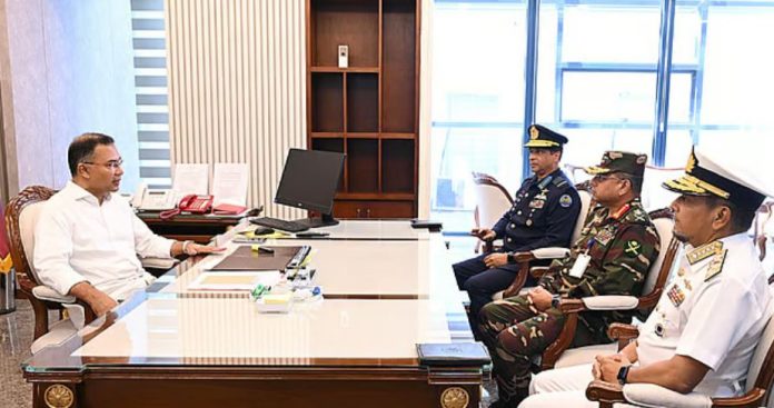 প্রধানমন্ত্রী তারেক রহমানের সঙ্গে সৌজন্য সাক্ষাৎ করেছেন সেনা, নৌ ও বিমানবাহিনীর প্রধানেরা।