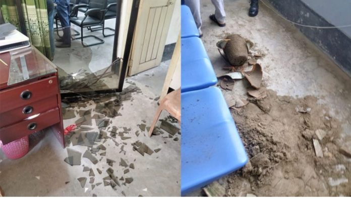 নির্বাচন অফিস সূত্রে জানা যায়, বিএনপির স্থানীয় নেতাকর্মীরা অভিযোগ করেন যে, তাদের কাজ নির্বাচন অফিসে ইচ্ছাকৃতভাবে আটকে রাখা হচ্ছে। এ সময় তারা “আওয়ামী ট্যাগ” দেওয়ার অভিযোগ তুলে অফিসে হামলা ও ভাঙচুর চালান। হামলাকারীরা নির্বাচন কর্মকর্তার সঙ্গে দুর্ব্যবহার ও অকথ্য ভাষায় গালিগালাজ করেন বলেও জানা যায়। এতে অফিসের জানালার কাচ ভাঙচুরের পাশাপাশি দুইজন আহত হন।