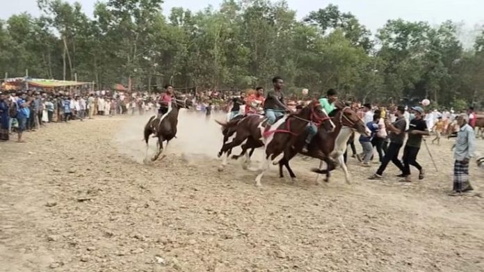 সোমবার বিকালে উপজেলার দেওপাড়া ইউনিয়নে কালিকাপুর যুব সমাজের উদ্যোগে কালিকাপুর চেকপোস্ট ময়দানে এ ঘোড় দৌড় প্রতিযোগিতা অনুষ্ঠিত হয়।
